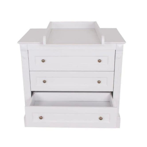 Elegant Love N Care Santorini Chest White with matching drawer knobs and stylish feet.
