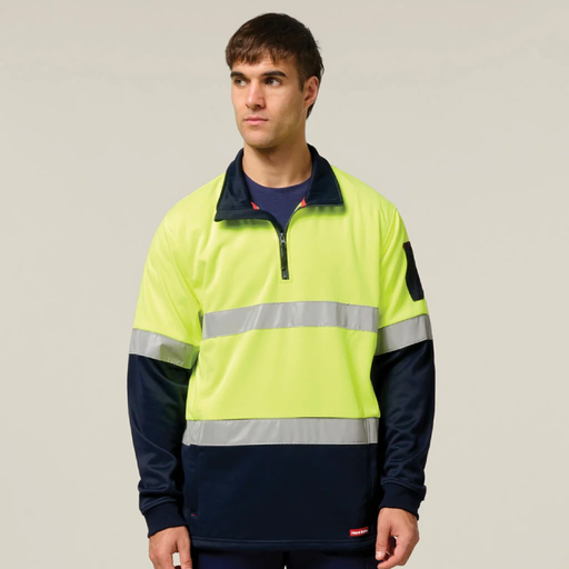 Hard Yakka Hi Vis 2 Tone 1/4 Zip Brushed Fleece Jumper With Tape