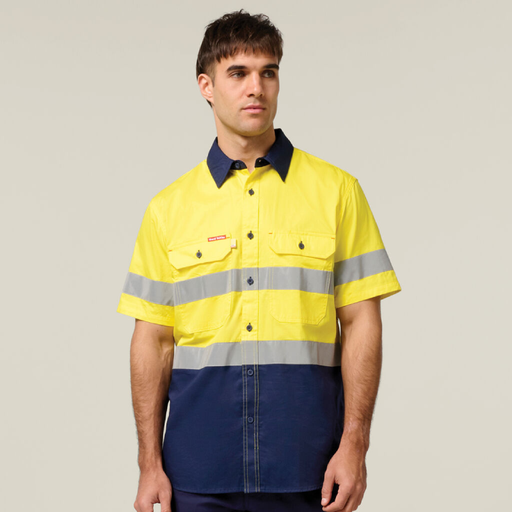 Hard Yakka Koolgear Ventilated Hi Vis Shirt With Tape 3M Taped Two Tone Short Sleeve Shirt