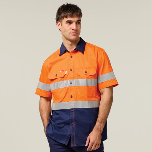 Hard Yakka Koolgear Ventilated Hi Vis Shirt With Tape 3M Taped Two Tone Short Sleeve Shirt