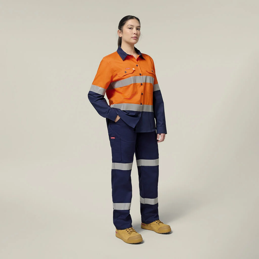 Hard Yakka Long Sleeve Hi Vis Light Weight 2 Tone Ventilated Shirt With 3M Reflective Tape