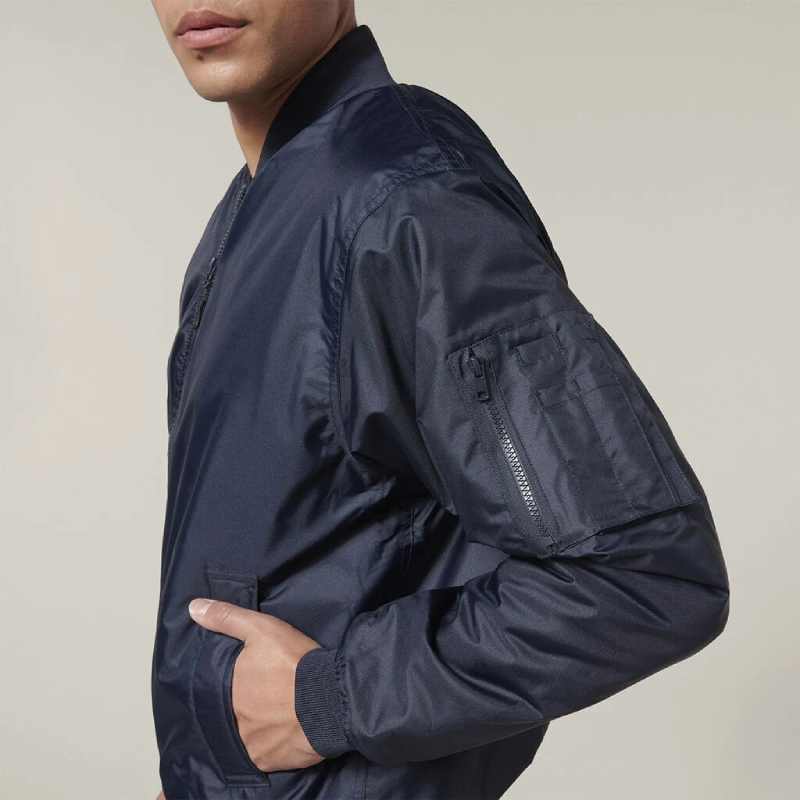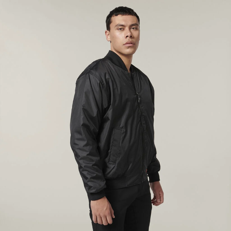 Hard Yakka Black Ribbed Waistband Bomber Jacket Tradie Work Jumper