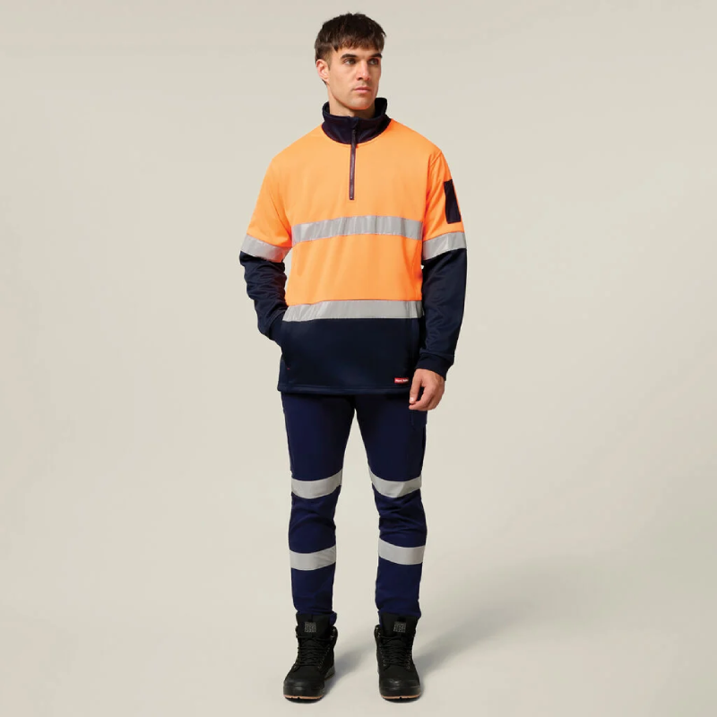 Hard Yakka Hi Vis 2 Tone 1/4 Zip Brushed Fleece Jumper With Tape