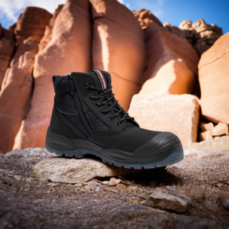 Wide Profile Steel Toe Cap: Withstands 200J impact and 1.5‑ton compression, certified to AS 2210.3:2019 with EVA comfort liner