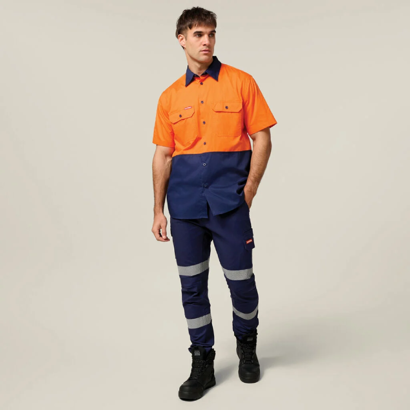 Hard Yakka Short Sleeve Light Weight Drill 2 Tone Ventilated Shirt Y04620