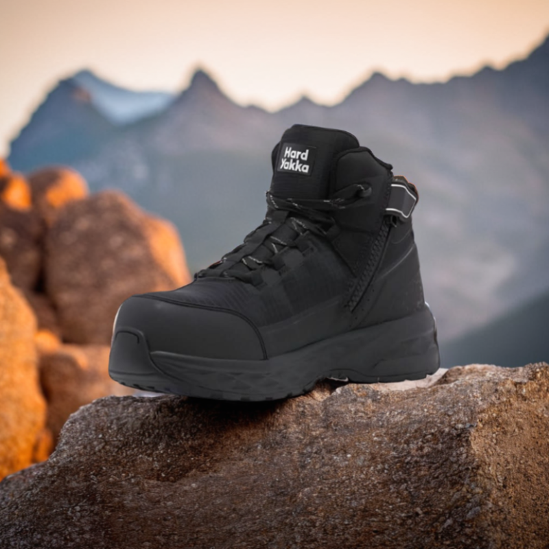 The Hard Yakka X Range Mid Composite Toe Safety Boot is strong, light, comfortable, and supportive - a next‑generation hybrid safety boot designed for tradies who want the protection of a traditional work boot with the agility of modern sports footwear. Built with industry‑leading sports‑inspired materials and technology, it delivers certified safety while reducing fatigue, making it ideal for fast‑paced environments where comfort and performance matter.