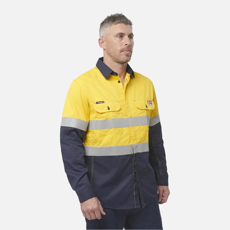 King Gee Shieldtec Fr Hi-Visibility Two Tone Open Front Long Sleeve Shirt With Fr Tape