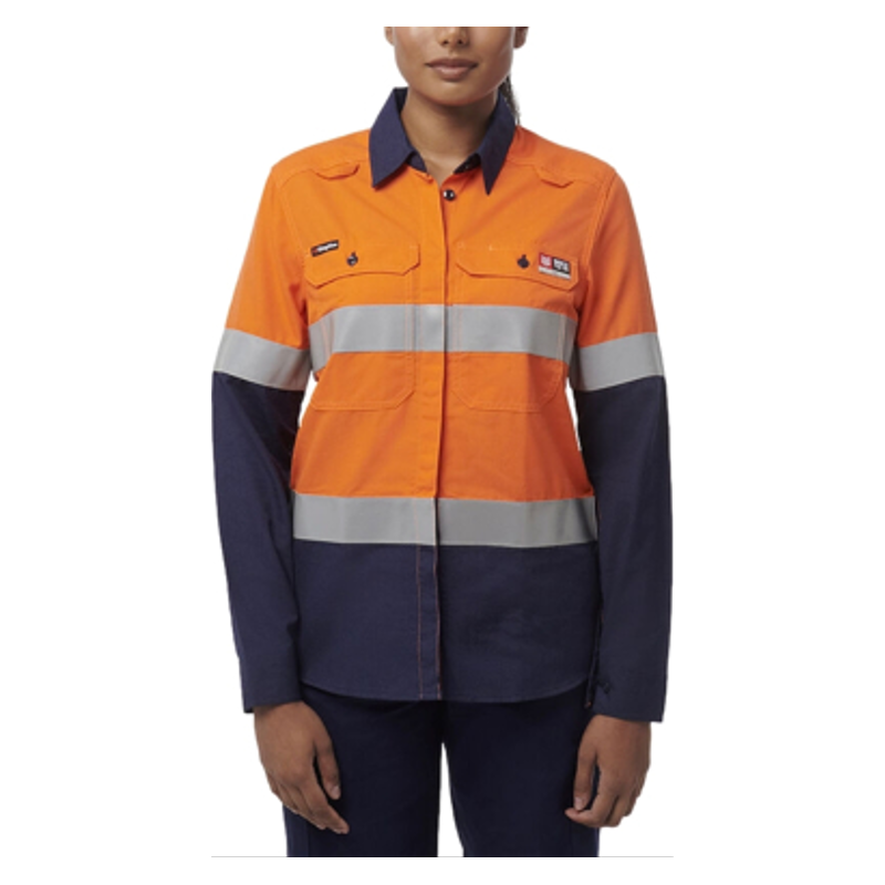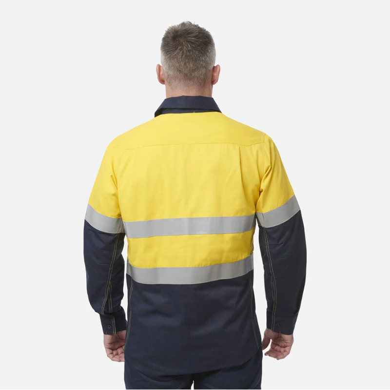 King Gee Shieldtec Lenzing Flame Ratardant Hi-Vis Spliced Open Front Taped Shirt