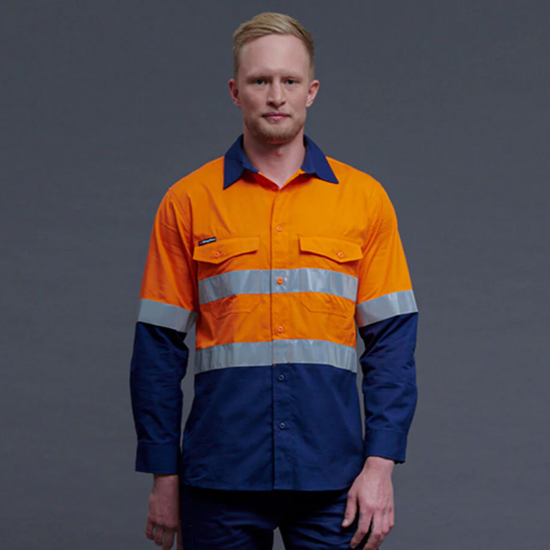 King Gee Workcool 2 Hi-Vis Reflective Spliced Shirt Long Sleeve