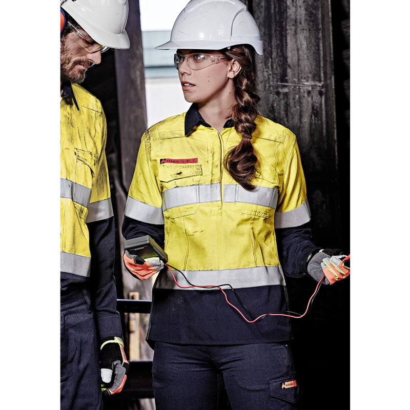 Syzmik Womens Flame Resistant Closed Front Hooped Taped Spliced Long Sleeve Shirt