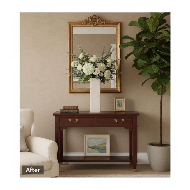 Versatile Placement: Adaptable design fits perfectly in entryways, living areas, or offices, bridging modern and traditional styles.