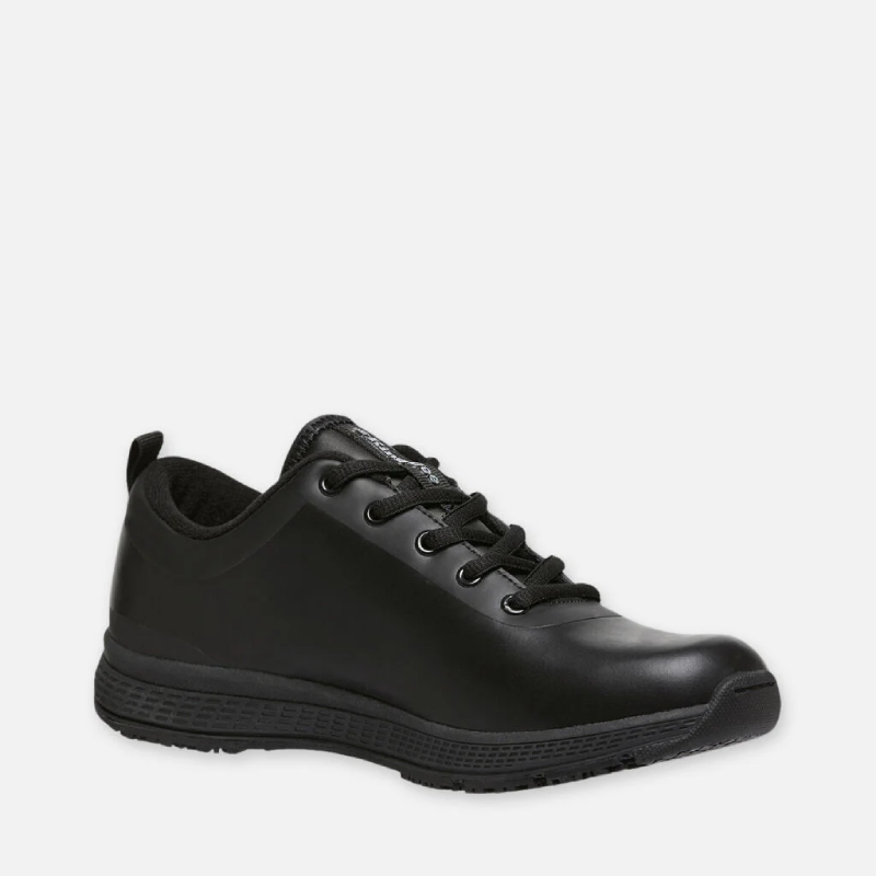 The Women’s Superlite Leather Lace-Up Work Shoe is a perfect balance of lightweight design, safety, and comfort. With its athletic-inspired construction, slip-resistant outsole, and cushioned footbed, it is ideal for women who spend long hours in healthcare, hospitality, or logistics. The water-resistant leather upper adds durability, while the tailored fit ensures all-day ease.